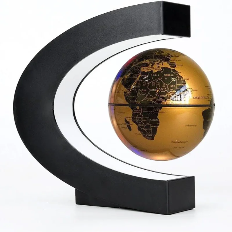 این وسیله منحصر به فرد دارای یک پایه C شکل با تابش زیبای نورهای LED میباشد که پس از تنظیم کره در نقطه چرخش، کره بوسیله نیروی مغناطیسی ایجاد شده به صورت معلق میچرخد و نمای بسیار زیبا و فوق العاده ای را به نمایش میگذارد