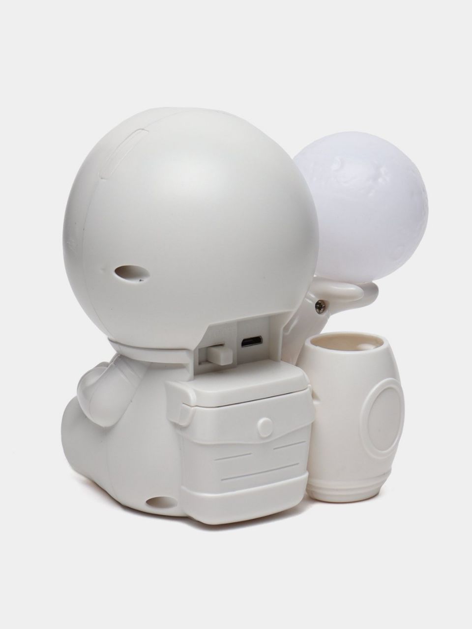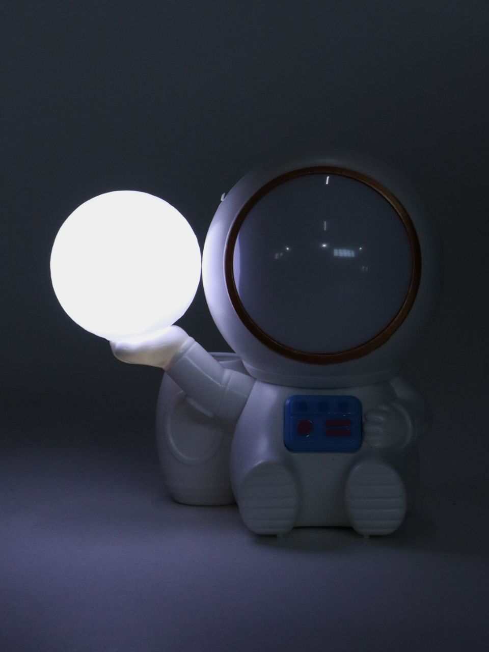 طراحی این چراغ خواب به شکل یک فضانورد کوچک که کره ماه را در دستان خود دارد است که با جزئیات دقیق و جذاب، حس ماجراجویی و سفر به فضا را القا میکند.