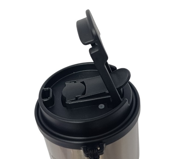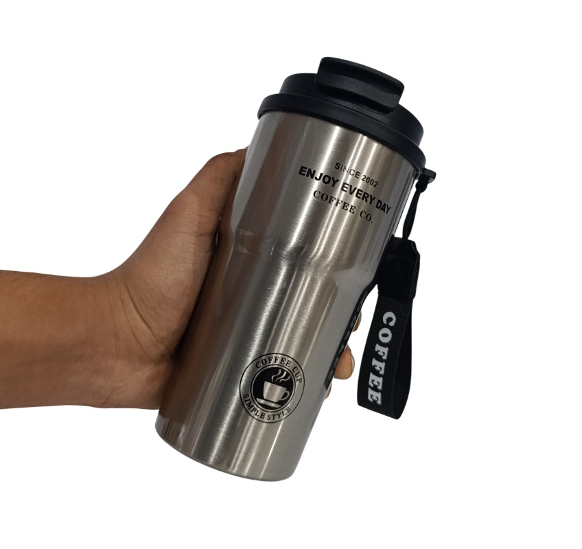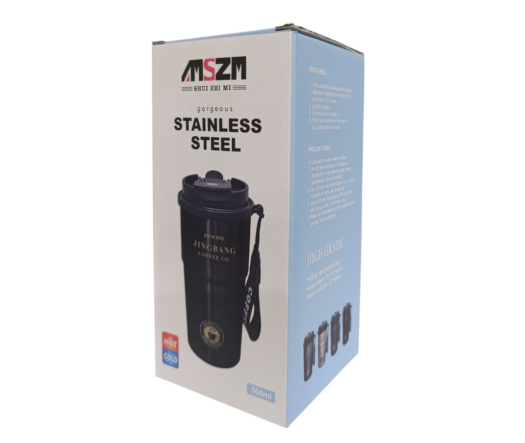تراول ماگ استیل ضد زنگ دو حالته Jingbang مدل MSZM ظرفیت 500ml مناسب نوشیدنی گرم و سرد با بند COFFEE سورمه ای